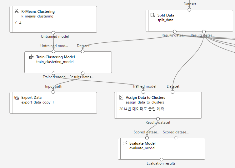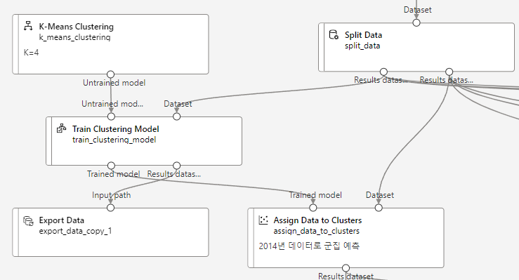 “Assign Data to Clusters” 컴포넌트 추가후 훈련된 모델과 테스트 데이터 연결