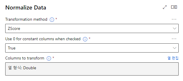 - Use 0 for constant columns when checked : 숫자 열에 단일 불변 값이 포함되어 있는 경우 이러한 열이 정규화 작업에 사용되지 않음