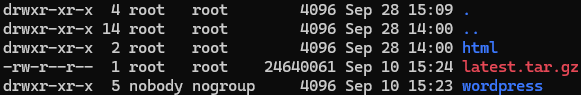 ( 워드프레스 웹에서 latest.tar.gz라는 압축파일을 가져옴 )