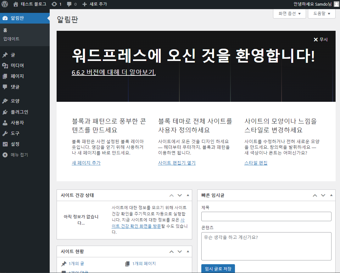 https://samdo.koreacentral.cloudapp.azure.com/wp-admin 에 접속해 위의 편집 화면으로 들어감